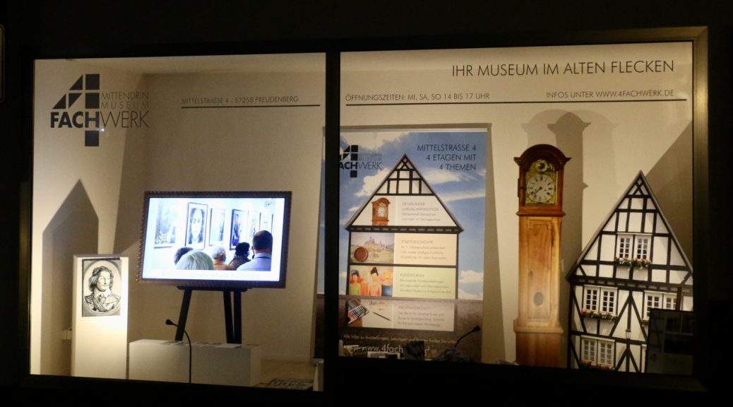Das 4Fachwerk-Museum liegt zwar mitten in der Altstadt von Freudenberg, allerdings etwas versteckt in der Mittelstraßen-Häuserzeile. Um mehr Aufmerksamkeit für Museum und Verein zu erzielen, präsentieren sich beide jetzt zusätzlich in einem Schaufenster im Haus Oranienstraße Nr. 23.