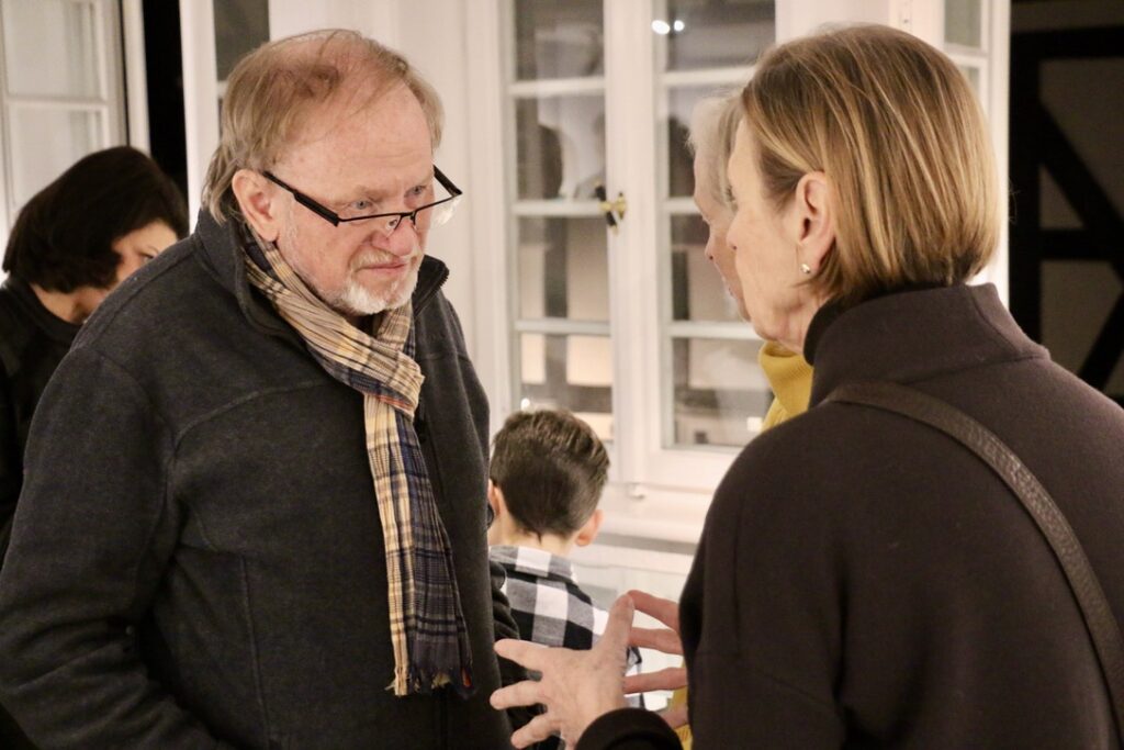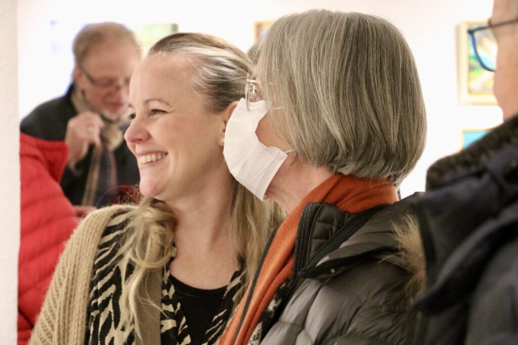 Begeistert zeigte sich auch Dieter Siebel: „Ich wünsche mir, dass zahlreiche Besucher kommen und diese großartige Kreativität erleben.“ Nina Niederhausen dankte dem 4Fachwerk-Team, dass gerade immer wieder Künstlern aus der Region, auch jüngeren, die Möglichkeit gegeben werde, sich in diesem besonderen Ambiente vorzustellen. Jedenfalls der Eröffnungsabend ließ den Titel „Begegnungen“ Wirklichkeit werden, da in der Tat so viele Gäste miteinander die gezeigten Formen und Farben auf sich wirken lassen konnten und sich darüber ins Gespräch kamen.