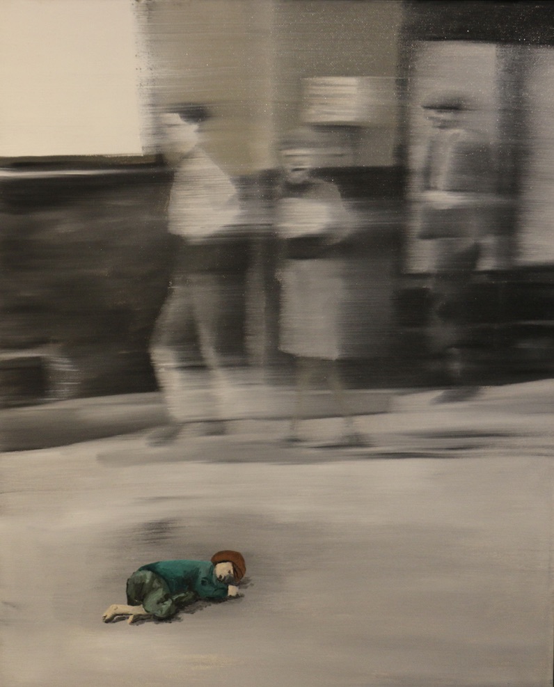 Auf ein Ausstellungsbild weist ihr Bruder Kai Niederhausen besonders hin. Es trägt den Titel „Gleichgültigkeit“ und unterstreiche besonders Nina‘s Anliegen, Menschen zu beobachten und gerade auch denen nahe zu sein, denen es schlechter geht. Das Werk erinnert an frühe Werke von Gerhard Richter und einer Maxime „Verwischen, um klar zu sehen“. „Ja, die fotorealistischen abbildhaften Arbeiten Richters mit oft monochromer Farbgestaltung in ihrer figürlichen Wirkung, beeindrucken mich sehr,“ zeigt Nina Niederhausen großen Respekt vor dem in Dresden geborenen und in Köln lebenden Künstler.
