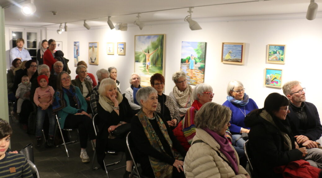 So viele Kinder sind noch nie bei einer Ausstellungeröffnung hier gewesen, staunte Dieter Siebel. Und die jungen Gäste konnte er mit einer historischen Milchmann-Schelle beeindrucken. Er begrüßte die überaus zahlreichen Besucher zur Vernissage „BEGEGNUNGEN“, einer Werkschau, in der Bilder von Nina Niederhausen im 4Fachwerk-Museum gezeigt werden.