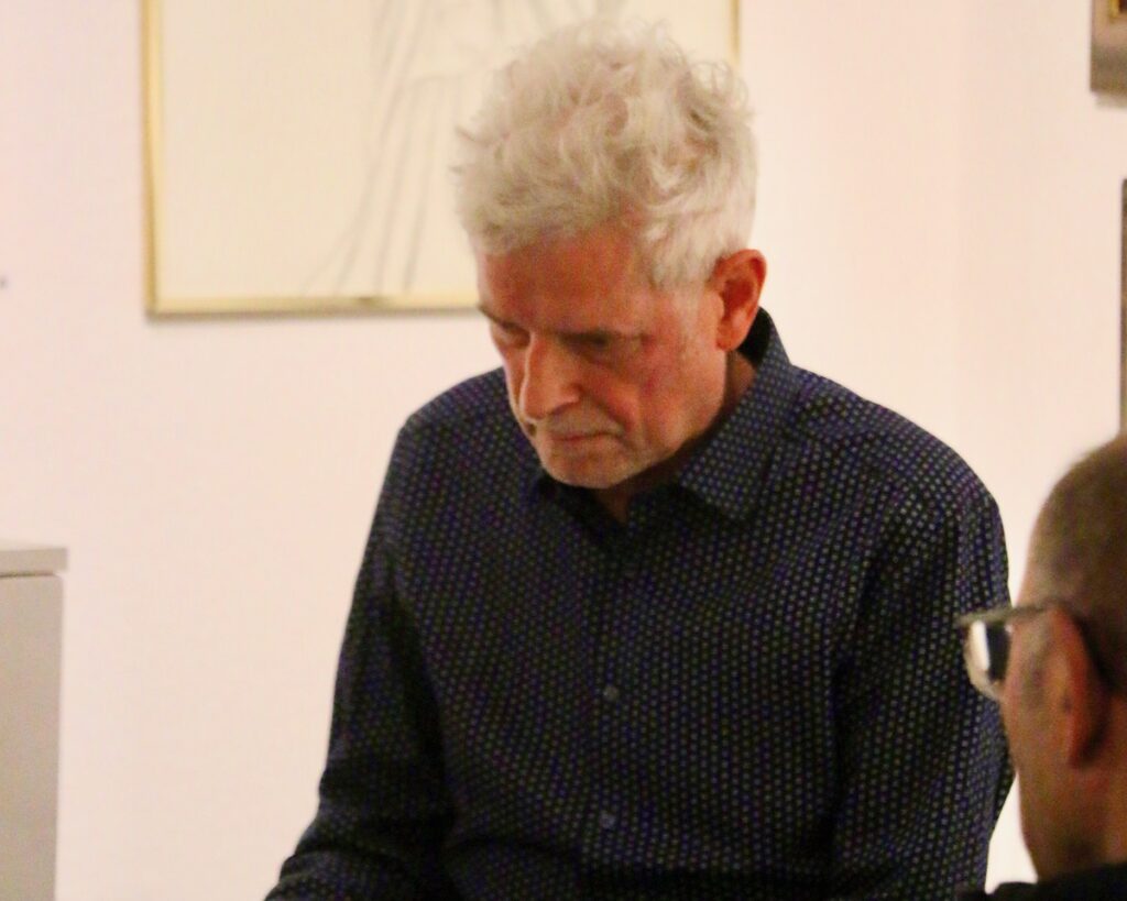 Ihren künstlerischen Werdegang schilderte Dieter Siebel in einem launigen wie warmherzigen Vortrag. Er hatte sie seit früher Zeit in ihrem künstlerischen Wirken begleitet: „ich durfte einer der Ersten sein, der eines Ihrer Bilder sehen konnte und Ihre einmalige Begabung für die Kunst erkennen durfte.“