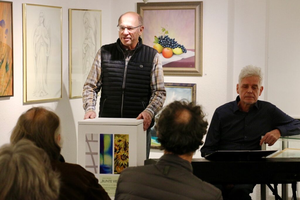 Es sei ein Anliegen, dass mit der Ausstellung die Erinnerung an Leben und Werk von Marlies Forneberg lebendig werde, formulierte 4Fachwerk-Vorsitzender Klaus Siebel-Späth in seiner Begrüßung bei der Eröffnung „Bunte Vielfalt“ mit Werken der im Mai 2023 verstorbenen Büschergrunder Künstlerin. In der Tat, bis auf den letzten Platz waren alle Stühle zur Vernissage besetzt. „Auch das ist schon ein Zeichen der besonderen Wertschätzung.“ Neben den vielen Kunstinteressierten galt sein herzlicher Gruß der Tochter Sonja, der Freundin seit Jugendtagen, Claudia Kritzler, sowie Ulrich Langenbach. In dessen Geisweider Kunstraum genoss Marlies Forneberg von 2009 bis 2023 das kreative Wirken mit einem eigenen Atelierplatz.