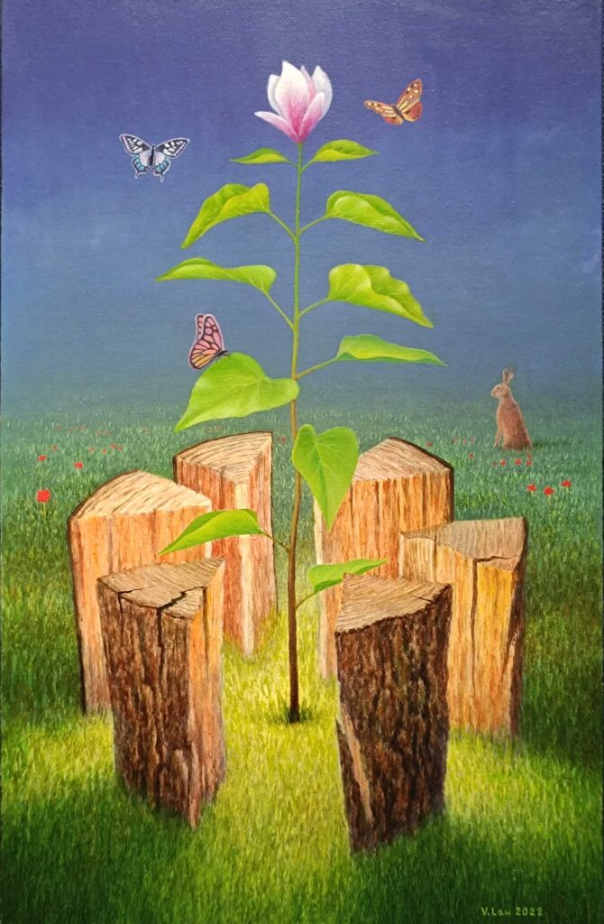 Die Werke zeichnen sich durch einen symbolhaften Realismus aus und umfassen Malerei sowie Bildhauerei. Figuren, Landschaften und weitere Elemente werden von Lau in einer neuen, transformierten Form dargestellt.