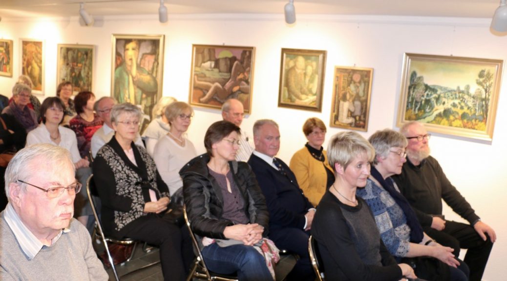 „Adolf Saenger zum Gedächtnis“ lautet der Titel der aktuellen Ausstellung, die an den herausragenden Siegerländer Maler erinnert. Dr. Ingrid Leopold, die als Kuratorin mit 55 seiner Werke eine einzigartige Werkschau zusammenstellte, ging in ihrer Eröffnungsrede auf das Leben und Wirken des Künstlers ein. Der Einladung zur Vernissage im adventlich geschmückten Alten Flecken waren viele Interessierte und Kunstbegeisterte aus Nah und Fern gefolgt. Lange nutzten sie die Gelegenheit, sich Gemälde und Zeichnungen genau anzuschauen und sich im Gespräch darüber auszutauschen. Viel Anerkennung gab es für den Maler, großen Beifall für die einfühlsame Interpretation durch Ingrid Leopold wie für die musikalische Umrahmung durch Marianne Dorndorf (Gesang) und Roland Jung (Gitarre).