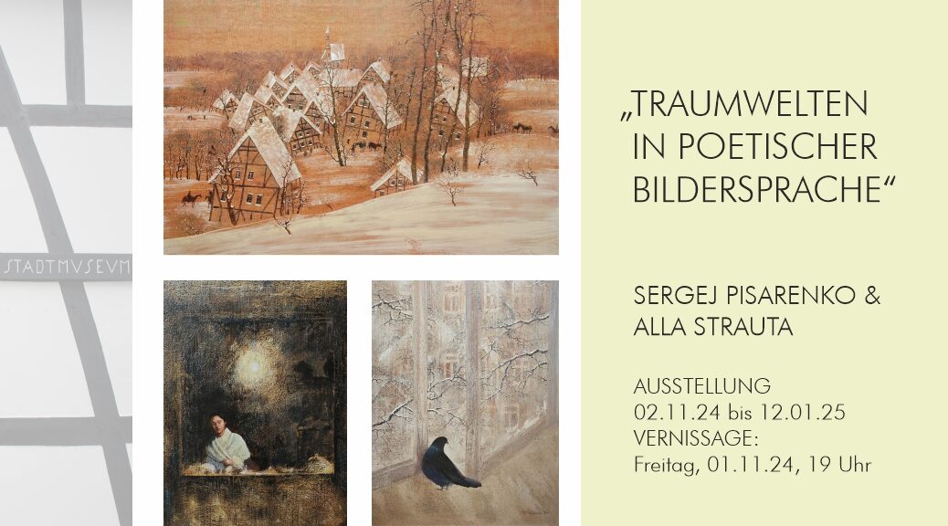 In einer Gemeinschaftsausstellung präsentieren Sergej Pisarenko (1967) und Alla Strauta (1959) ausgesuchte Beispiele ihres künstlerischen Wirkens. Beide beweisen eine Meisterschaft des „feinen Pinselstrichs“. Die Arbeiten als Grafiken, Aquarelle oder Ölbilder zeigen gegenständliche Motive. Mit den in ihrer Farbigkeit reduzierten Bildern gelingt es ihnen, in besonderer Weise bemerkenswerte Stimmungen auszulösen. Sie vermitteln Stille und Ruhe, wirken als visuelle Poesie, entführen in eine geheimnisvolle Traumwelt. Realität vermischt sich in wunderbarer Weise kreativ mit einem ganz eigenen Blick, ausgeführt in einer meisterlichen Bildsprache.