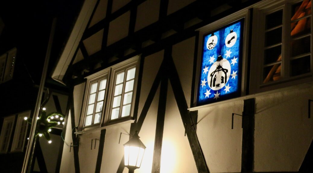 Übrigens lassen sich nicht nur im Museum selbst Kunstwerke betrachten. Bis zum Heilig-Abend-Tag sind im Alten Flecken dann alle 24 Türen bzw. Fenster mit adventlichen Motiven geöffnet, so dass sich die gesamte Altstadt zum weihnachtlich-stimmungsvollen Kunst-Rundgang eignet. Dieter Siebel, der vor 20 Jahren diese Art eines begehbaren Adventskalenders in Freudenberg erfand, wird am Dienstag, 27. Dezember 2022, ab 16:00 Uhr, hierzu eine Führung anbieten und die Werke der 22 daran beteiligten Künstlerinnen und Künstler vorstellen. Treffpunkt hierfür ist das 4Fachwerk-Museum in der Mittelstraße 4-6. „Wir freuen uns, wenn der Alte Flecken mit seiner besonderen Atmosphäre gerade in dieser Phase zwischen altem und neuem Jahr Raum und Zeit geben kann, Hektik beiseite zuschieben, um Kunst zu genießen,“ so die 4Fachwerker.