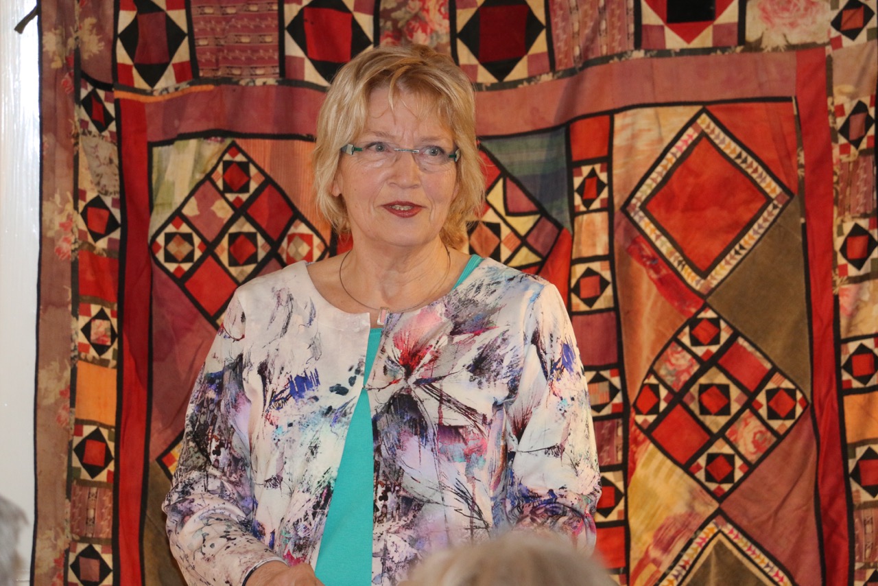 Die Chefin des KulturFleckens Silberstern, Friederike Schlebusch, hatte die Aufgabe der Laudatorin übernommen und gewann die Besucher mit einem hoch informativen Vortrag zur Geschichte und den Techniken des Quiltens. Sie schilderte ebenso die Leidenschaft und das persönliche Engagement, mit der Christina Böhm und viele weitere Künstlerinnen mit einer Menge Kreativität und handwerklichem Können dafür sorgen, dass aus kleinen Stoffstücken kunstvolle Muster entstehen. Und diese begeisterten in der Tat durch ihre vielfältigen Ausdrucksformen und Materialkombinationen.