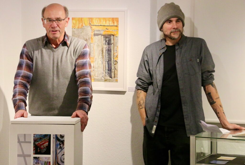 „Sie hat sich in der internationalen Aquarell-Szene einen Namen gemacht,“ lobt Kai Niederhausen den imposanten künstlerischen Entwicklungsprozess seiner Schwester. Der Bruder, selbst als Grafity-Künstler „Semor“ weltweit unterwegs, hatte die „einleitenden Worte“ zur Ausstellungseröffnung von Nina Niederhausen im 4Fachwerk-Museum übernommen.